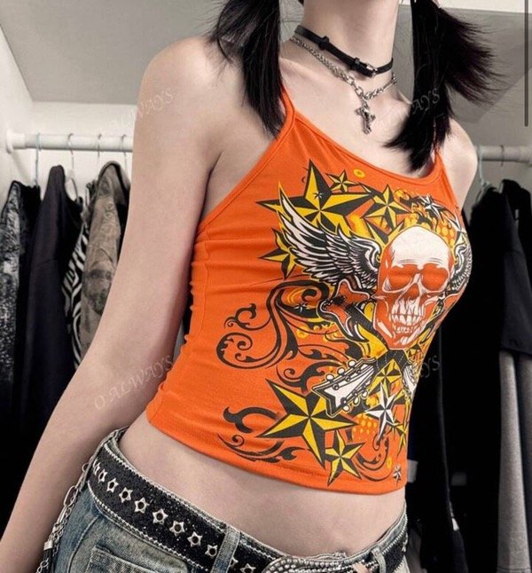 Top calavera naranja