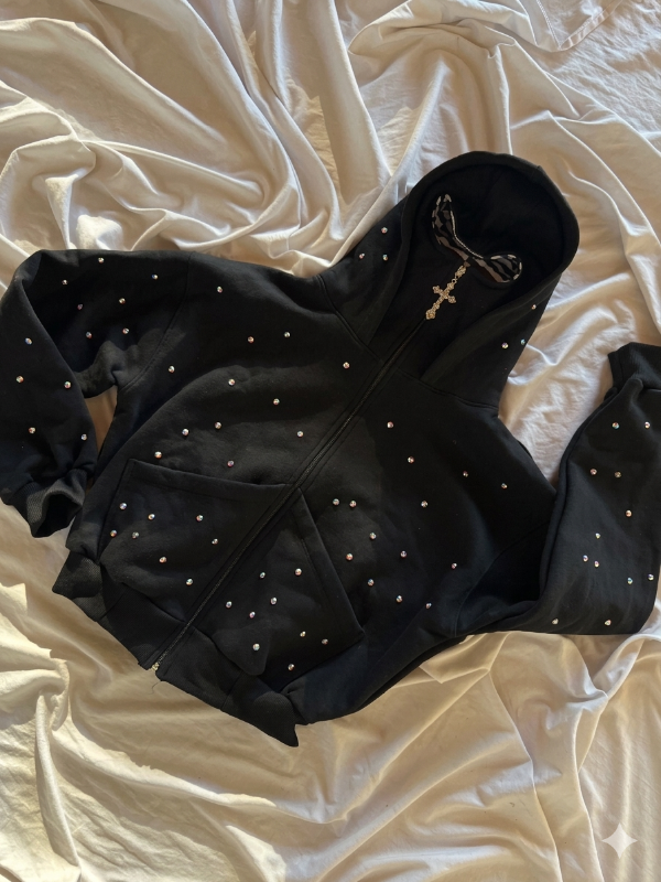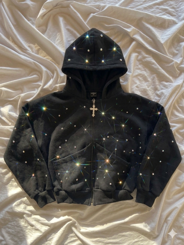 Campera strass pasamontañas corta